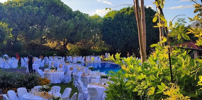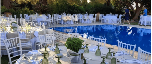Το κτήμα διαθέτει εξαιρετικά προσεγμένους χώρους που προσαρμόζονται ανάλογα με τις ανάγκες της εκδήλωσής σας. Ο υπέροχος κήπος και η πισίνα είναι ιδανικός για επαγγελματικά πάρτυ και εκδηλώσεις καθώς και εκδηλώσεις μόδας.