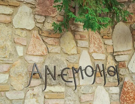 Το πράσινο που κυριαρχεί στο χώρο είναι αποτέλεσμα φροντίδας και αγάπης των ιδιοκτητών. Το όνομα του κτήματος εμπνεύστηκε η κόρη του αρχιτέκτονα - και ιδιοκτήτρια του κτήματος - από την πολλή πέτρα και τον άνεμο, χαρακτηριστικά γνωρίσματα του Λουτρακίου.